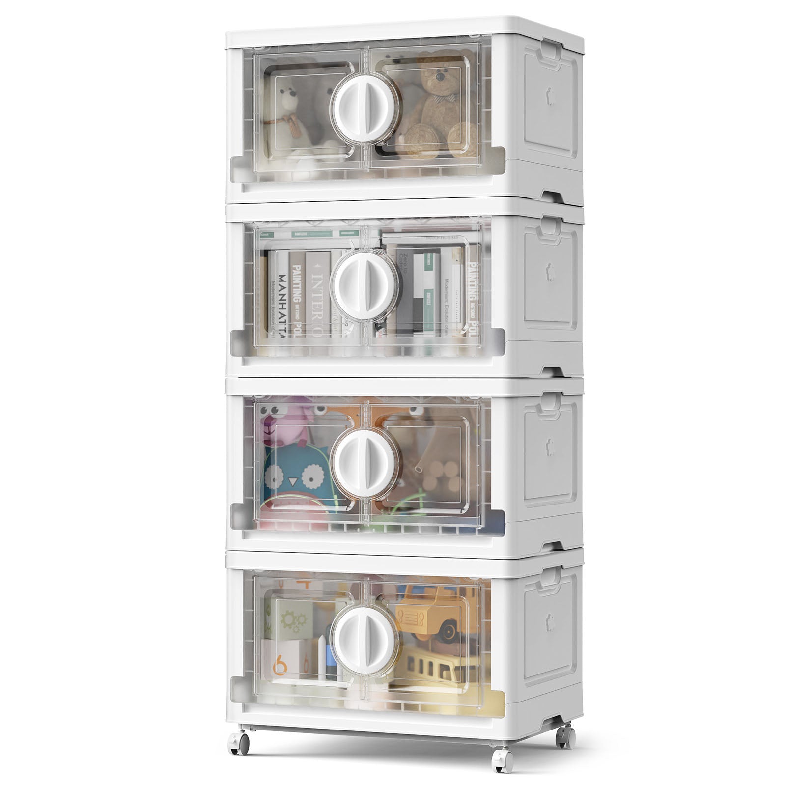 - STACKABLE AND COLLAPSIBLE DESIGN - You can stack different numbers of plastic storage bins to DIY any shelf you want, such as bedside cabinets, clothes cabinets, bookcases, kitchen cabinets, etc. With roomy capacity, odorless, and foldable design, these storage containers are perfect for your closet organizer, laundry organizer, trunk organizer, garage tote, playroom storage, book storage shelves, classroom bins, and dorm storage box.