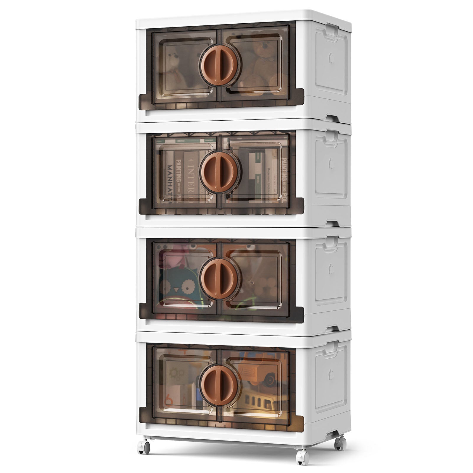 - STACKABLE AND COLLAPSIBLE DESIGN - You can stack different numbers of plastic storage bins to DIY any shelf you want, such as bedside cabinets, clothes cabinets, bookcases, kitchen cabinets, etc. With roomy capacity, odorless, and foldable design, these storage containers are perfect for your closet organizer, laundry organizer, trunk organizer, garage tote, playroom storage, book storage shelves, classroom bins, and dorm storage box.