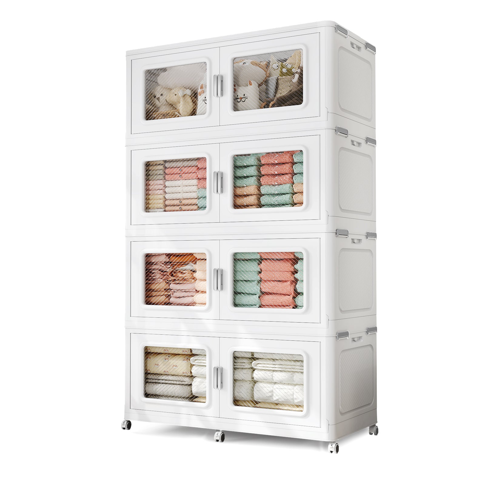 ✅ Fully Mobile & Stackable – Equipped with 6x 360° silent rotating wheels, this large storage cabinet glides effortlessly. The interlocking groove system ensures secure stacking for multi-tier organization.